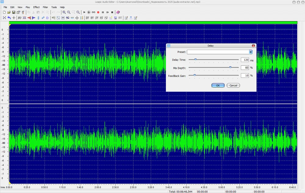 - Перейдите в «Effect» → «Delay». Отрегулируйте значение ползунком.