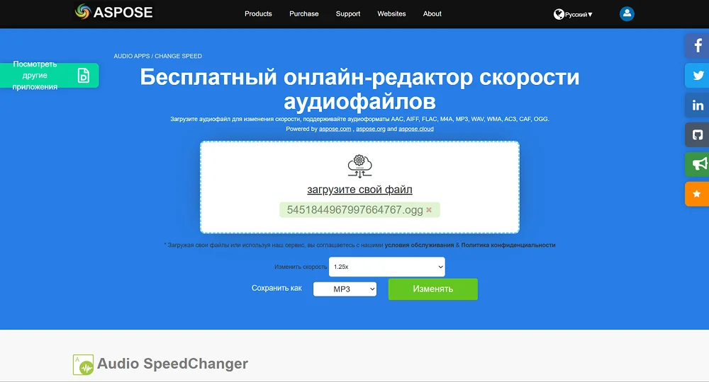 Бесплатный онлайн-инструмент для изменения скорости звука без потери качества, который сохраняет результат в одном из доступных форматов. Загрузка и обработка происходят на удаленном сервере, после чего вы получаете ссылку на готовый материал.